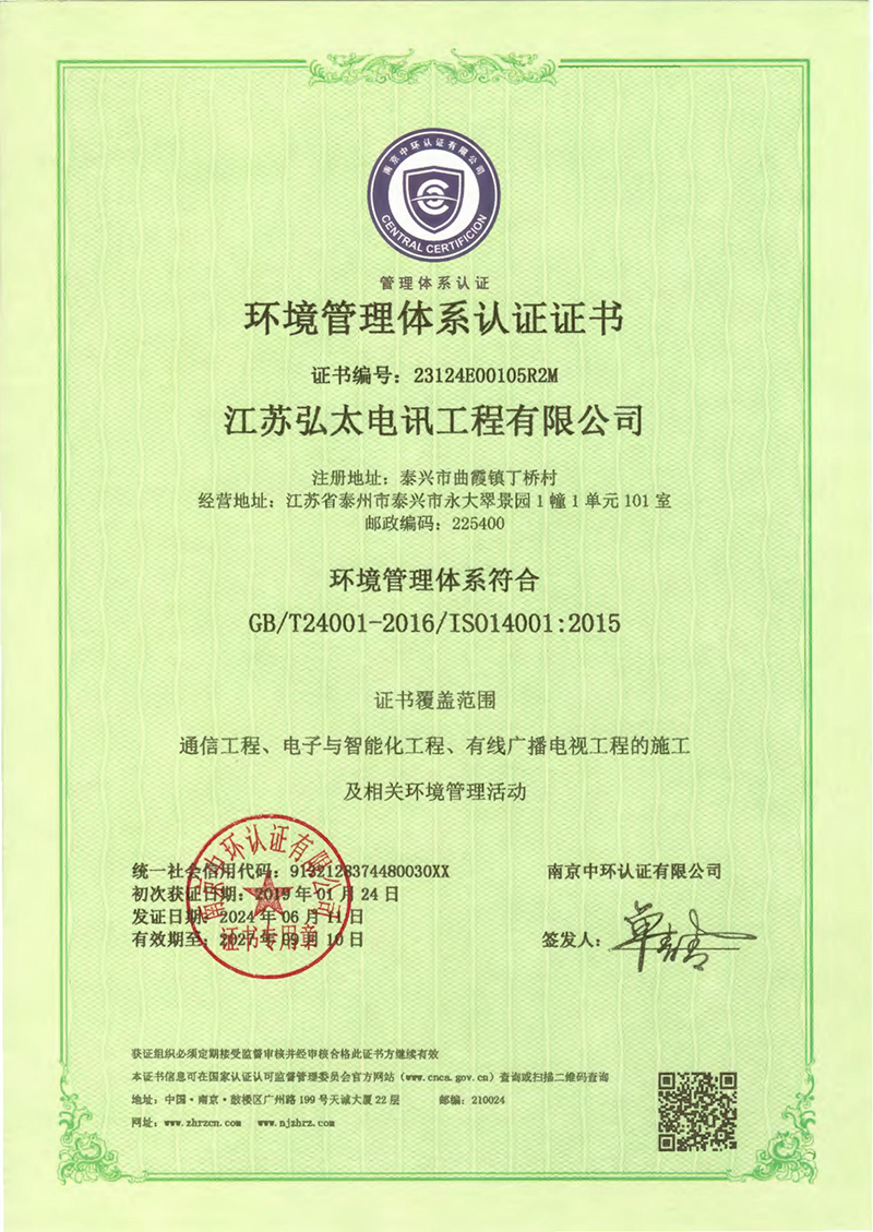 环境管理体系认证证书