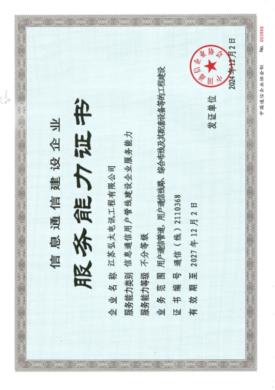 信息通信建设企业服务能力证书